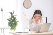 Kobieta relaksująca się w fotelu biurowym w miejscu pracy, widok z tyłu