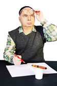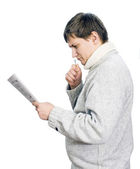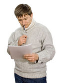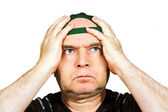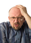 dorosły pokazuje emocje uczucia. Studio fotografii na tle.