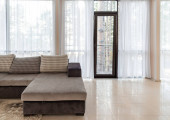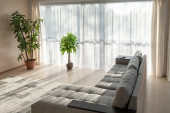 Zdjęcie "Nowoczesne wnętrze z dużą sofą i dużymi oknami" może być wykorzystywane do celów osobistych i komercyjnych zgodnie z warunkami zakupionej licencji Royalty-free. Obraz jest dostępny do pobrania w jakości wysokiej rozdzielczości do 5760x3840.