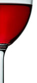 Martwa natura z butelkę i kieliszek czerwonego wina na białym tle.