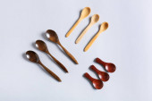 Różne drewniane łyżki na białym tle