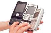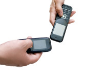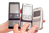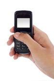 ręka z telefonu komórkowego na białym tle