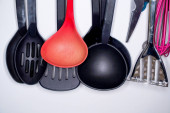 Zdjęcie "Sztućce do gotowania ułatwia gotowanie w kuchni i został sfotografowany tutaj w studio " może być wykorzystywane do celów osobistych i komercyjnych zgodnie z warunkami zakupionej licencji Royalty-free. Obraz jest dostępny do pobrania w jakości wysokiej rozdzielczości do 5760x3840.