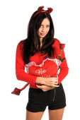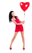 Sexy młoda kobieta z karty walentynkowe i obecnie w jej ręce