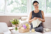 Zdjęcie "Przyjemna kobieta siedzi na wygodnej kanapie przy stole ze zdrowym smacznym jedzeniem i pić hygge boho scandi" może być wykorzystywane do celów osobistych i komercyjnych zgodnie z warunkami zakupionej licencji Royalty-free. Obraz jest dostępny do pobrania w jakości wysokiej rozdzielczości do 5760x3840.