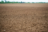 Zaorane pole na włoskiej wsi w pogodny dzień wiosną