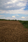 Zaorane pole na włoskiej wsi w pogodny dzień wiosną