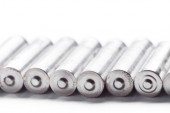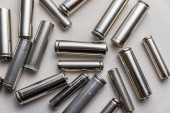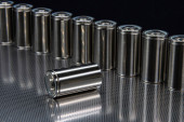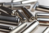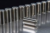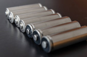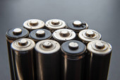 Baterie rozmieszczone obok siebie, na ciemnej powierzchni. Baterie, energia i szacunek dla środowiska. Baterie alkaliczne lub akumulatorowe.