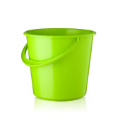 Zielone plastikowe wiadro na potrzeby gospodarstw domowych izolowane na białym tle. Produkty gospodarstwa domowego.