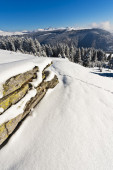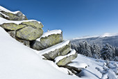piękne krajobrazy gór w zachód słońca zimą