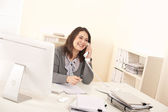 uśmiechnięta kobieta, pracująca w telefonie w urzędzie