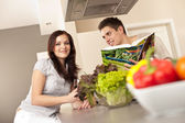 młoda kobieta rozpakowaniu torba na zakupy w kuchni