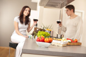 Zdjęcie "Młoda para picie czerwonego wina w kuchni" może być wykorzystywane do celów osobistych i komercyjnych zgodnie z warunkami zakupionej licencji Royalty-free. Obraz jest dostępny do pobrania w jakości wysokiej rozdzielczości do 5760x3840.