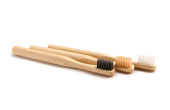 dwie plastikowe szczoteczki do zębów na białym tle, zbliżenie