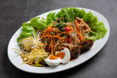 Papaya Sałatka ze słodkim skorupiakiem na ciemnym tle