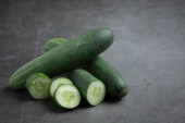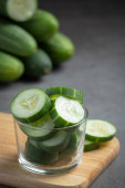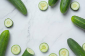 świeże ogórki krojone na marmurowym tle