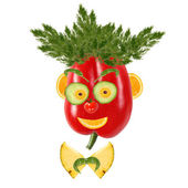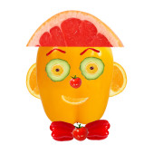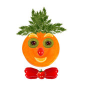 zabawny portret wykonany z truskawek, bananów i pomarańczy