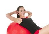 fitness - młoda kobieta z piłką Ćwiczenie na biały