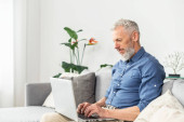 Zdjęcie "brodaty mężczyzna za pomocą laptopa podczas siedzenia na kanapie w pobliżu filiżanki kawy i smartfona z pustym ekranem na zamazanym pierwszym planie" może być wykorzystywane do celów osobistych i komercyjnych zgodnie z warunkami zakupionej licencji Royalty-free. Obraz jest dostępny do pobrania w jakości wysokiej rozdzielczości do 5760x3840.