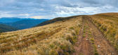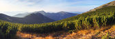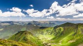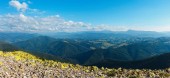 letni poranek górskiej z zielonego lasu na stoku (Ukraina, Karpat). trzech strzałów stitch obrazu.