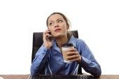 udanego biznesu kobiety na telefon z filiżanki kawy