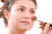 ciała Pielęgnacja serii – piękna młoda kobieta stosowania proszku