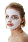 Zdjęcie "młoda kobieta, stosując biały twarzy maski pędzlem" może być wykorzystywane do celów osobistych i komercyjnych zgodnie z warunkami zakupionej licencji Royalty-free. Obraz jest dostępny do pobrania w jakości wysokiej rozdzielczości do 5760x3840.