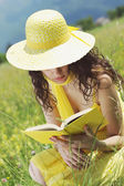 plaża - młoda kobieta się zrelaksować z książką w bikini