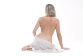 plaża - rozgwiazda z flip-flop na piasku, topless kobiety opalanie w tle