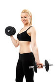 Zdjęcie "blond kobieta z ciężarkami na białym tle" może być wykorzystywane do celów osobistych i komercyjnych zgodnie z warunkami zakupionej licencji Royalty-free. Obraz jest dostępny do pobrania w jakości wysokiej rozdzielczości do 5760x3840.