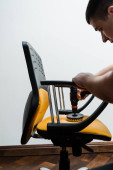 Druty z kombinezonu ratowniczego na siłowni. Trening sportowy w elektrycznym kombinezonie do stymulacji mięśni. Wykonywanie ćwiczeń fizycznych.