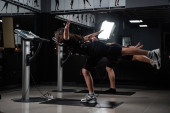 Zdjęcie "Dziewczyna w kombinezonie na siłowni. Trening sportowy w elektrycznym kombinezonie do stymulacji mięśni. Wykonywanie ćwiczeń fizycznych." może być wykorzystywane do celów osobistych i komercyjnych zgodnie z warunkami zakupionej licencji Royalty-free. Obraz jest dostępny do pobrania w jakości wysokiej rozdzielczości do 5760x3840.