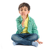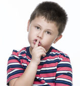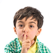 dziecko robi ciszy gest na białym tle