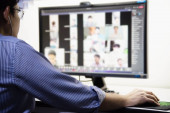 WFH, instruktor edukacji pracuje w domu podczas blokady COVID-19, pracy w domu nauczania i egzaminu online