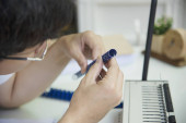 Zdjęcie "WFH, instruktor edukacji pracuje w domu podczas blokady COVID-19, pracy w domu nauczania i egzaminu online" może być wykorzystywane do celów osobistych i komercyjnych zgodnie z warunkami zakupionej licencji Royalty-free. Obraz jest dostępny do pobrania w jakości wysokiej rozdzielczości do 5760x3840.
