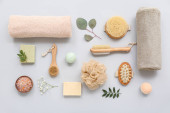 Zdjęcie "Rama wykonana z różnych materiałów do kąpieli na tle koloru" może być wykorzystywane do celów osobistych i komercyjnych zgodnie z warunkami zakupionej licencji Royalty-free. Obraz jest dostępny do pobrania w jakości wysokiej rozdzielczości do 5760x3840.