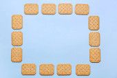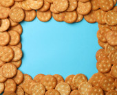 Ramka wykonana ze smacznych krakersów na tle koloru