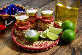 Miski plasterki limonki, zielony sos i bulion jagnięcy na kolorowy obrus