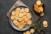 Zdjęcie "Miska ze smacznymi krakersami na tle koloru" może być wykorzystywane do celów osobistych i komercyjnych zgodnie z warunkami zakupionej licencji Royalty-free. Obraz jest dostępny do pobrania w jakości wysokiej rozdzielczości do 5760x3840.