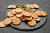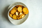 Zdjęcie "Płyta ze smacznymi krakersami na tle koloru" może być wykorzystywane do celów osobistych i komercyjnych zgodnie z warunkami zakupionej licencji Royalty-free. Obraz jest dostępny do pobrania w jakości wysokiej rozdzielczości do 5760x3840.