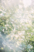 pierwsze liście na drzewach, pąki drzew z bliska. Makrofotografia wiosny. piękny abstrakcyjny bokeh i niewyraźne w tle, rozmyte kolorowe zdjęcia filmowe z hałasem