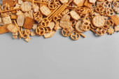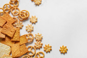 Ramka wykonana ze smacznych różnych krakersów na jasnym tle