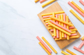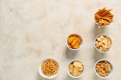 Miska ze smacznymi różnymi krakersami na jasnym tle