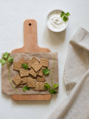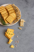 Miska ze smacznymi różnymi krakersami na jasnym tle