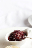 Płyta ze smacznym risotto buraczanym na jasnym tle