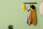 Zdjęcie "Wieszak z nowoczesnymi ubraniami we wnętrzu hali" może być wykorzystywane do celów osobistych i komercyjnych zgodnie z warunkami zakupionej licencji Royalty-free. Obraz jest dostępny do pobrania w jakości wysokiej rozdzielczości do 5760x3840.