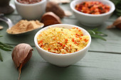 Zdjęcie "Miska z kuskusem i warzywami na drewnianym tle" może być wykorzystywane do celów osobistych i komercyjnych zgodnie z warunkami zakupionej licencji Royalty-free. Obraz jest dostępny do pobrania w jakości wysokiej rozdzielczości do 5760x3840.
