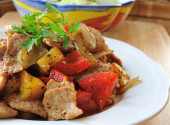 Smażona wieprzowina z chili. żywność tajlandzka