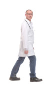 wykwalifikowany lekarz ze stetoskopem do przodu. izolowany na białym