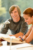 uczeń - dwóch nastolatek czytanie książki do domu